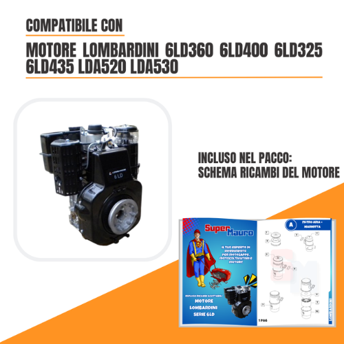 FILTRO ARIA CON CAPPELLO COMPLETO LOMBARDINI 6LD325 6LD360 6LD400 6LD435 LDA520 quantità