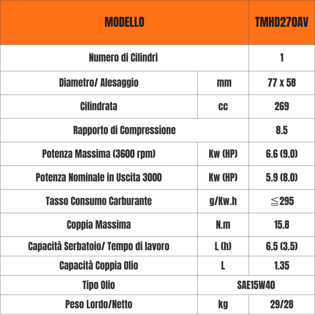MOTORE COMPLETO CON AVVIAMENTO ELETTRICO TORO MOTORI TMHD270AV