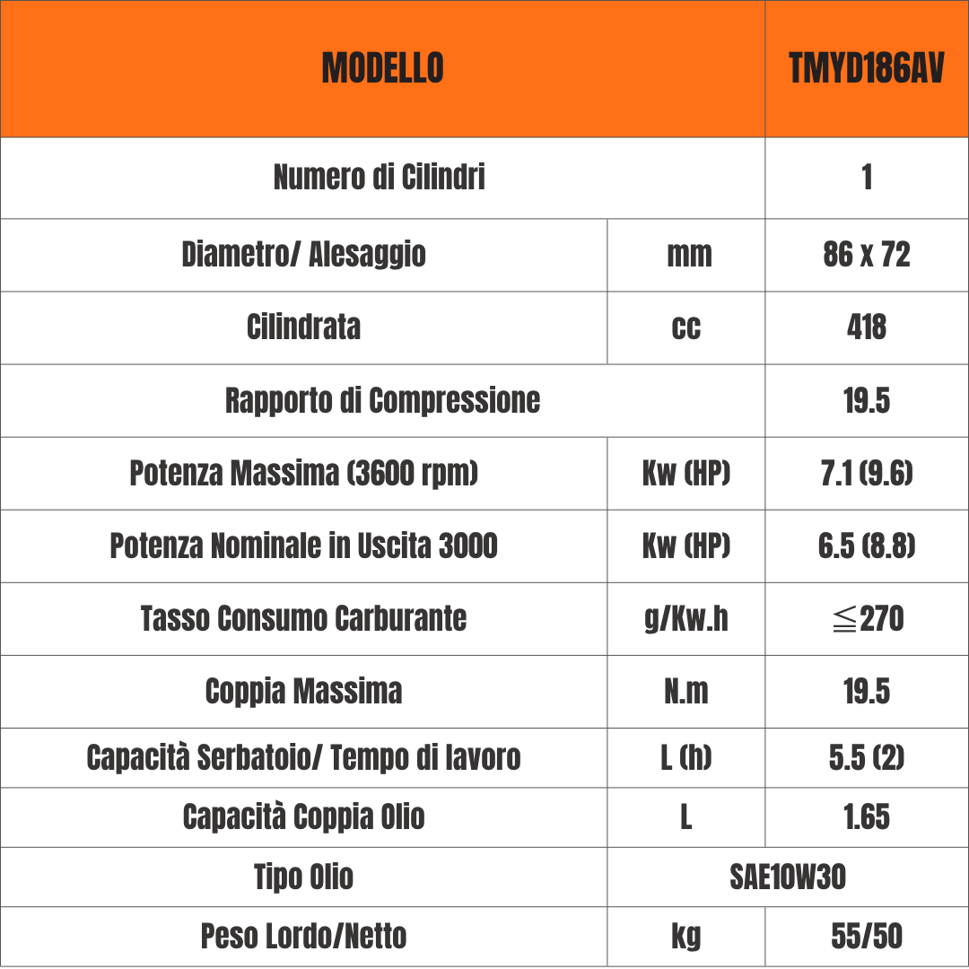 MOTORE COMPLETO DIESEL 10 HP CON AVVIAMENTO ELETTRICO YANMAR TMYD186 CONICO 23mm